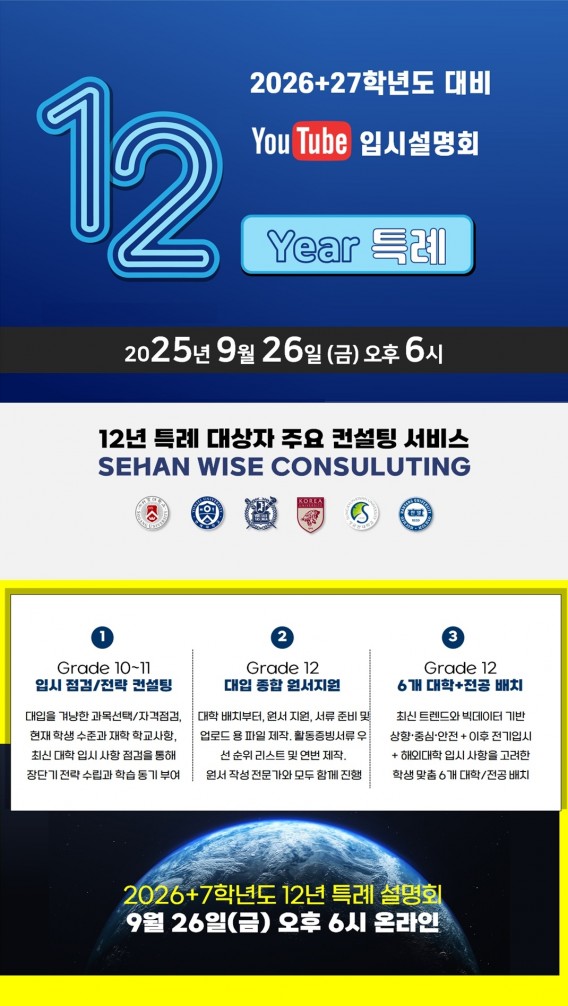 [세한아카데미] 9/26(금) 12년 특례 입시 온라인 실시간 설명회