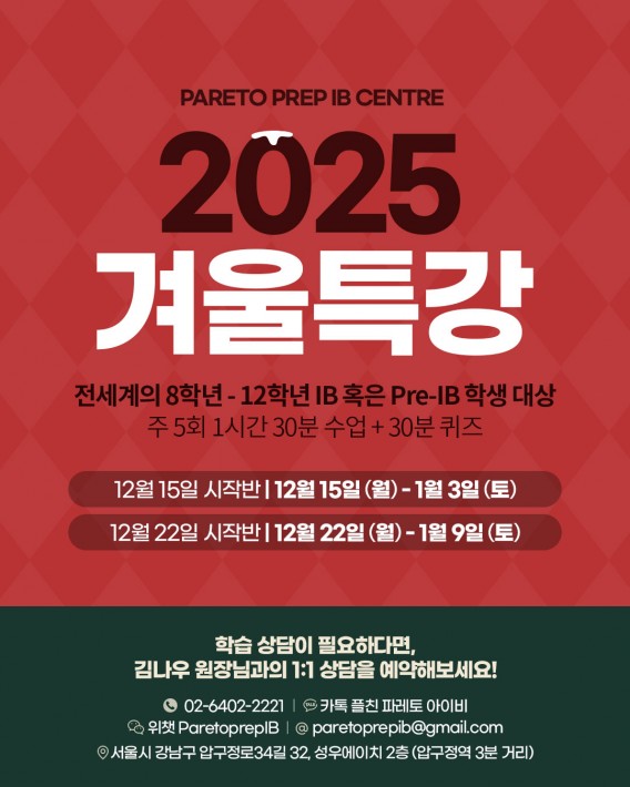 ㅡ 파레토프렙 IB센터 2025 겨울특강 안내